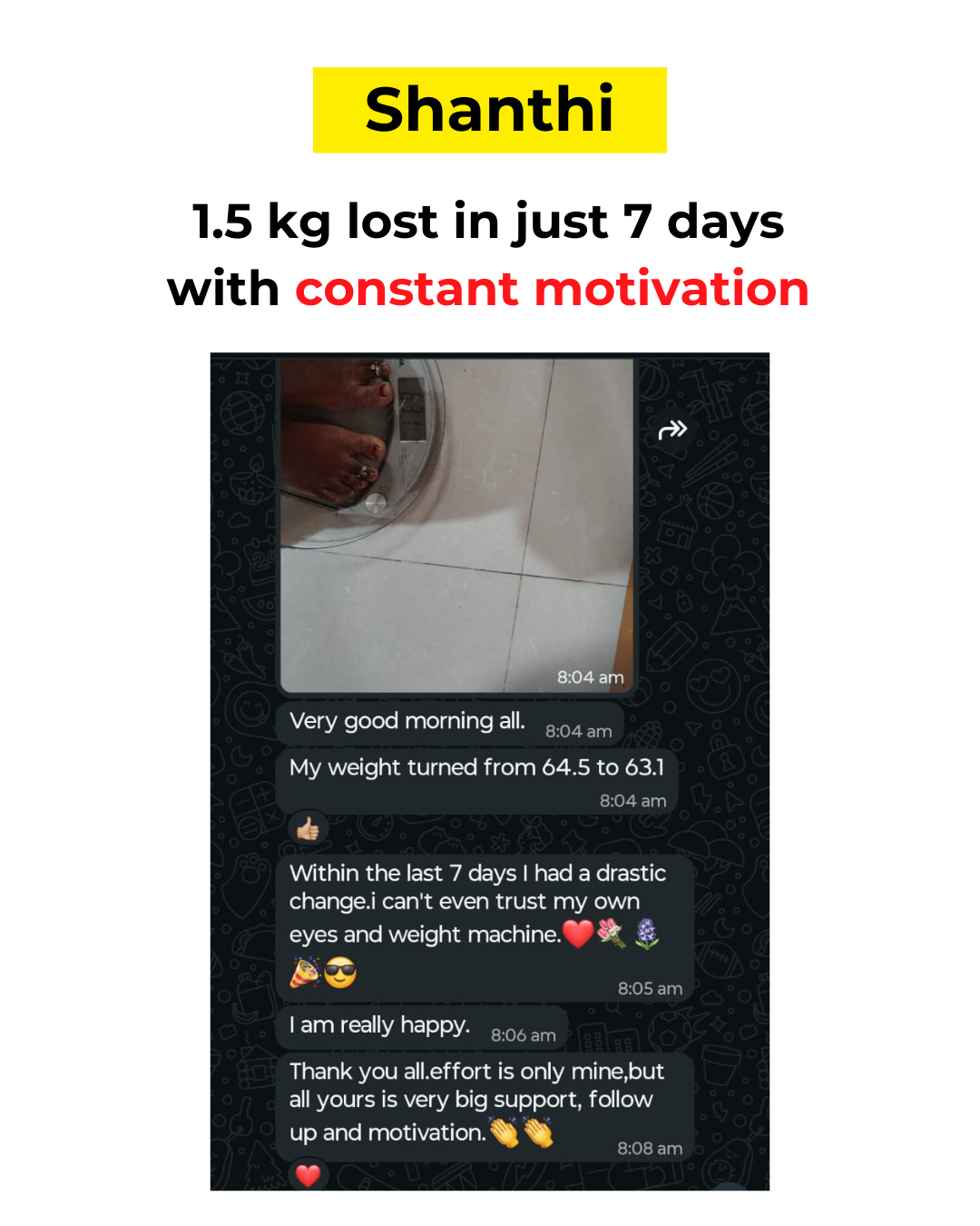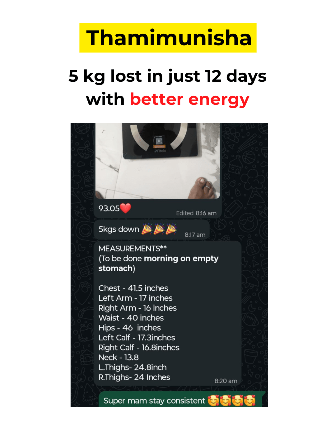 - 8–12 kg fat loss without crash dieting or extreme workouts.